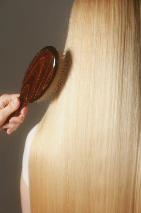 Essential Boar Bristle Brush: Featuring 100% pure, ethically sourced boar bristles and nylon pins, this brush adds luster, controls frizz, and distributes natural oils for sleek, healthy hair. Perfect for all hair types and extensions, the Essential Brush is very gently detangles hair without damage and ensures elegant, everyday styling.