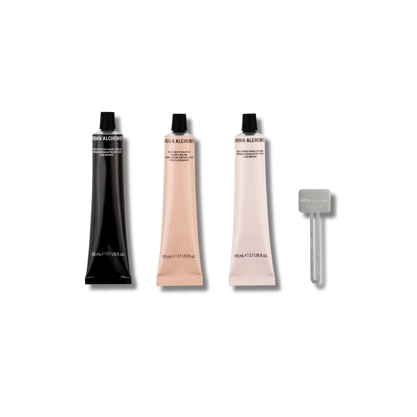 A trio of our best-selling full size hand creams that give three levels of hand hydration. For every season, for every situation. Hands are moisturized and comfortable. Mix and match everyday hydration, soothing care and intensive hand cream relief. Includes a metal tube squeezer to ensure zero-waste.