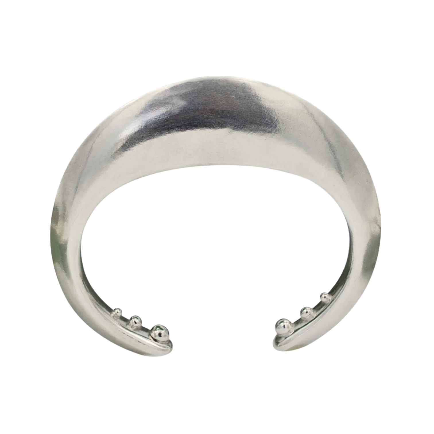 Heavy hand carved cuff with a little over 3 ounces of metal. This baby is a real statement piece. Can be made in recycled sterling silver or brass. Fits like a medium and cannot be sized. Inside measurement is roughly 6" with a 1 1/2" opening.